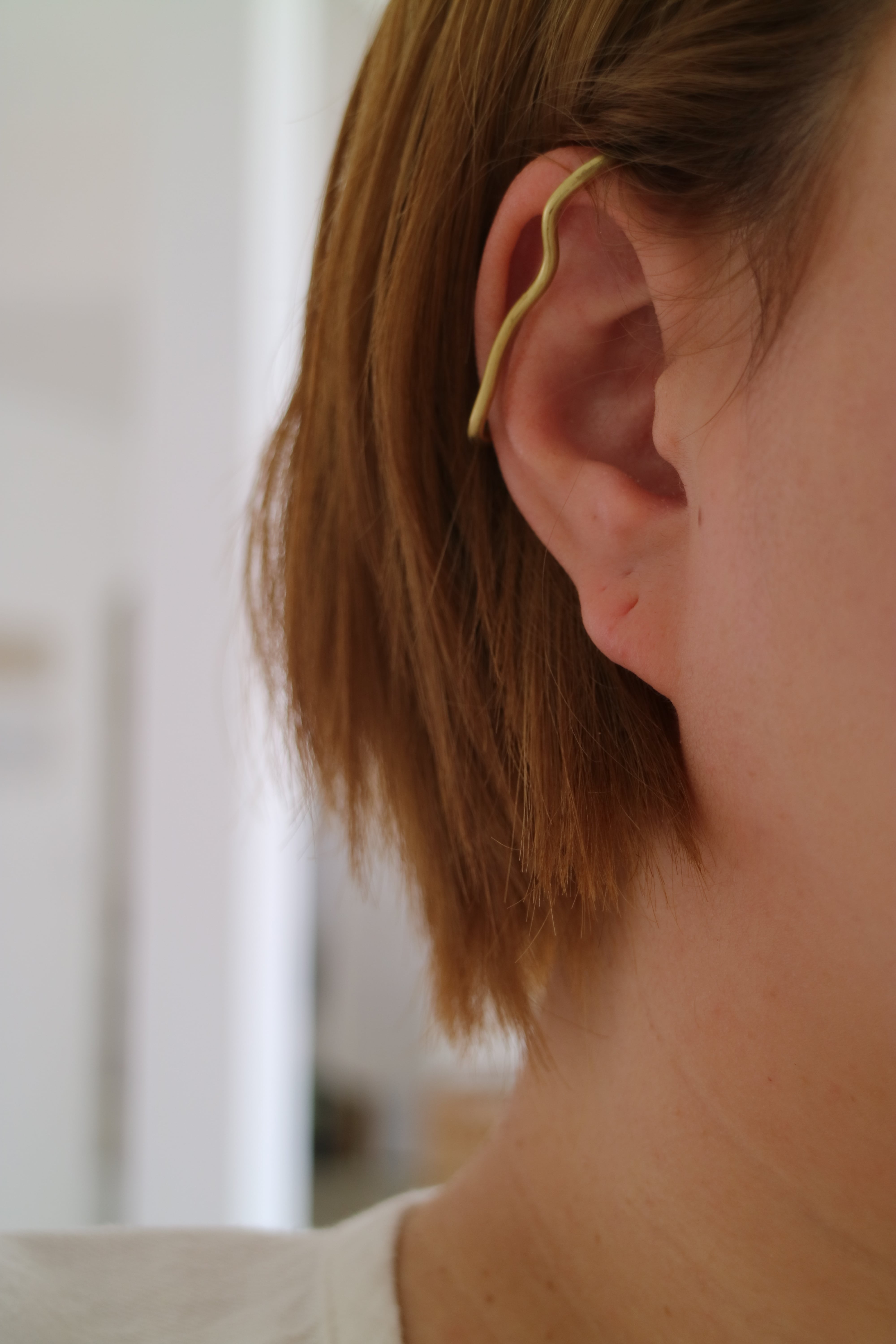 耳の上部に被せて使うタイプのイヤーカフになります。